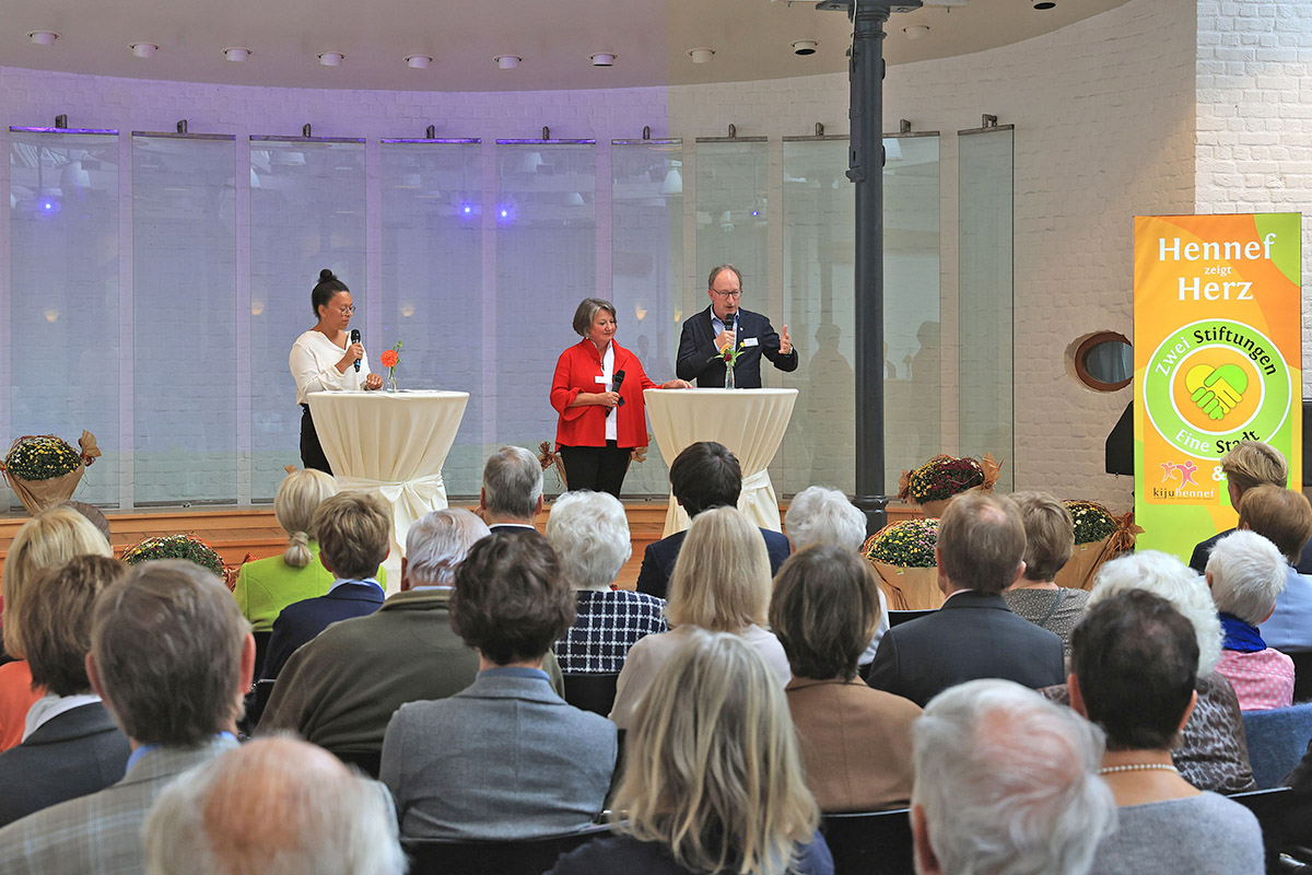 Besonderen Applaus erhielten Elke Lichtenberg und Natalie Lambertz für ihren unermüdlichen Einsatz im Hintergrund. Bürgermeister Mario Dahm würdigte in seinem Grußwort die Arbeit der beiden Stiftungen, die mit ihrer Kreativität, ihrem Mut und ihrer Nähe zu den Menschen das Leben in Hennef nachhaltig bereichern. Sie hätten, so Dahm, das Leben von über 10.000 Kindern und 14.000 Seniorinnen und Senioren positiv beeinflusst.