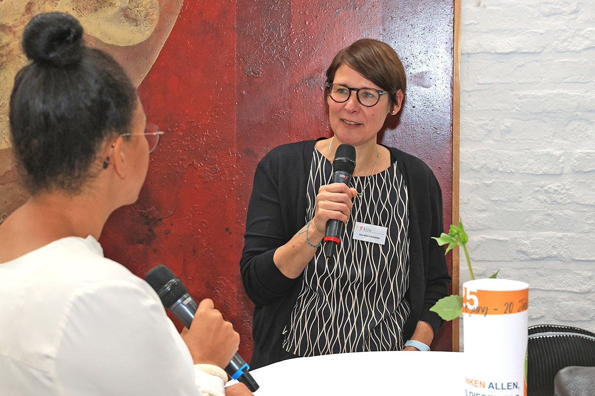 Wie vielfältig die Arbeit der Stiftungen ist, zeigten zahlreiche Erfahrungsberichte. Sonja Walgenbach, Leiterin der AWO-Kita Wirbelwind, erzählte für die KiJu von der nachhaltigen Wirkung von Programmen wie „Frühdolin“, „Augen auf – die kleine Schule der Achtsamkeit“ und dem Lesepatenprojekt. Maj Kockelmann, Projektkoordinatorin der KiJu, stellte Jugendprojekte wie das „Speed-Debating“ zur Demokratieförderung und das inklusive Aids-Präventionsprojekt vor. Volker Altwicker, Schatzmeister der KiJu, sprach über die verantwortungsvolle Verwaltung des Stiftungskapitals und gab Einblicke in Projekte, die durch Zustiftungen möglich wurden – etwa ein Wohnprojekt für eine junge Mutter in Kooperation mit der Villa Mamaya.